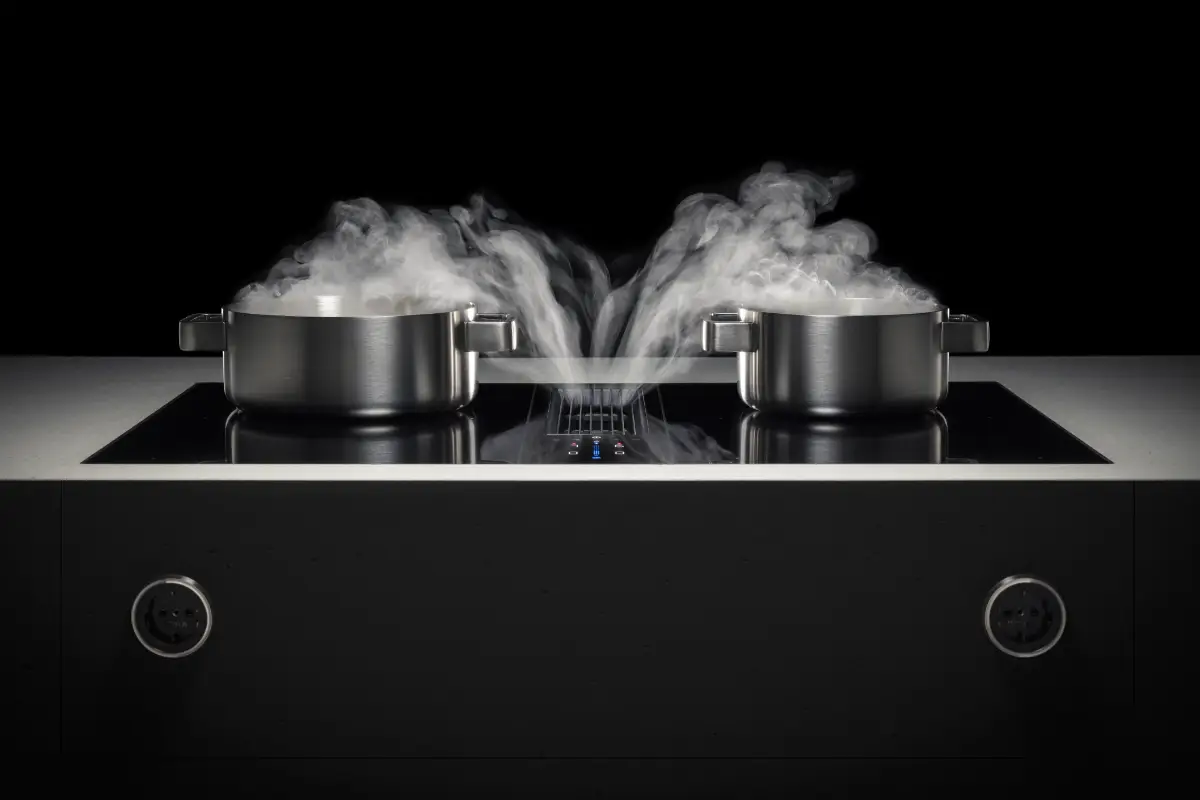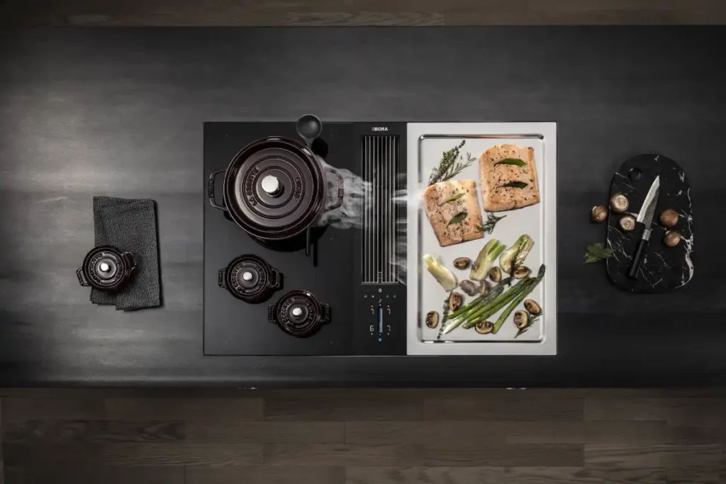 BORA’s bordemfang er bygget op om en revolutionerende og patenteret teknologi, hvor madosen afsuges fra toppen på gryder eller pander.