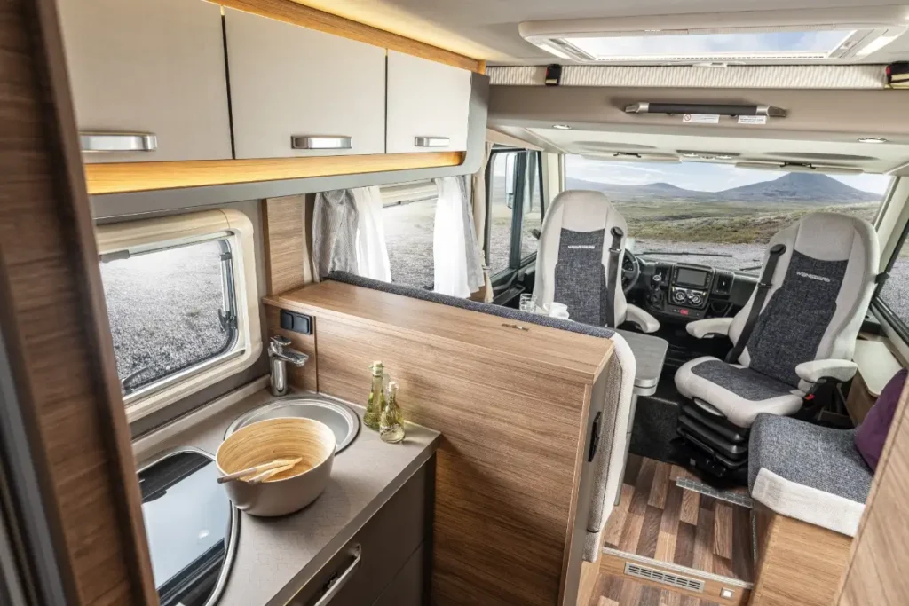–Her er førerhuset mere integreret i selve autocamperen end i den halvintegrerede model, og den har et meget moderne design. Møbeldesignet betyder rigtig meget for køberne. Tidligere var det kvinden, der gik op i det indvendige, mens manden var mere optaget af, om der var fede fælge. I dag går de begge op i designet, siger han.