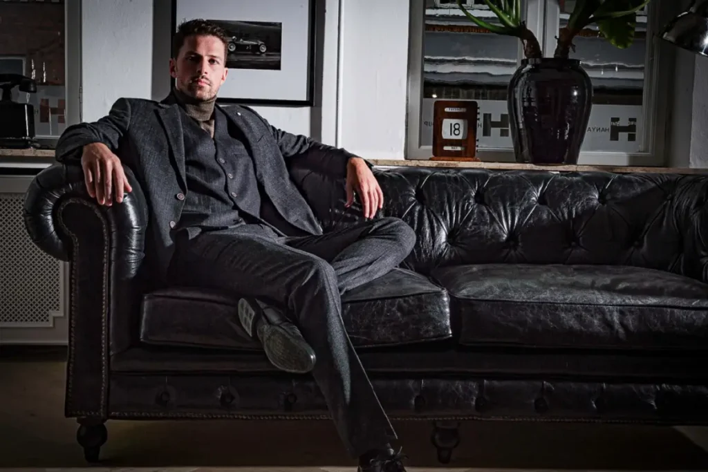 En typisk habitjakkes manglende fleksibilitet er en anden udfordring, der nok er velkendt af mange mænd. Habitjakker tages ofte af til selskaber, fordi bevægelsesfriheden er så lille, at bare det at række ud efter sit vinglas kan blive en akavet manøvre. ”En rigtig mand tager ikke sin jakke af til et selskab,” siger Nielsen med et tydeligt glimt i øjet. Når han tillader sig at sige sådan, er det, fordi 2Blind2C har løst problemet. De bruger nemlig mix-metervarer med elastan for at gøre flere af de ellers typisk meget stive beklædningsgenstande decideret behagelige (!) at have på. Når der lægges stretch i foret på jakken, kan man pludselig række armene frem uden problemer. ”Det er vigtigt at få defineret, hvad mandens behov er, og hvad hans hurdler er,” siger Nielsen og tilføjer: ”Komfort er generelt vigtigt, og du kan sagtens have en af vores kropsnære slimfit-jakker på en hel aften uden gener.”