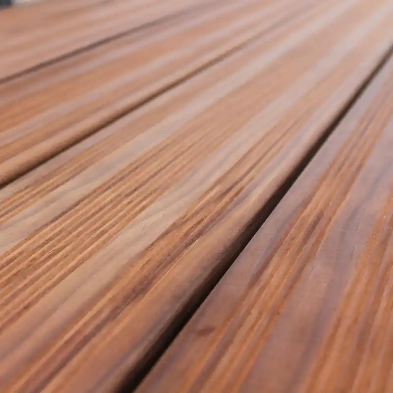 For husejeren herhjemme i Danmark betyder det, at man f.eks. kan få en eksklusivt udseende og stort set knastfri terrasse. Som det organiske materiale det er, kan træ naturligt producere enkelte, mindre knaster, men ellers er Frøslev ABODO knastfrit og har en flot, ensartet overflade. Træet besidder en varm brunlig farvenuance, der er mørkere end almindeligt varmebehandlet træ, og som enten patinerer flot naturligt eller som kan overfladebehandles løbende med en farvepigmenteret træbeskyttelse, der bevarer den oprindelige, æstetiske overfladenuance.