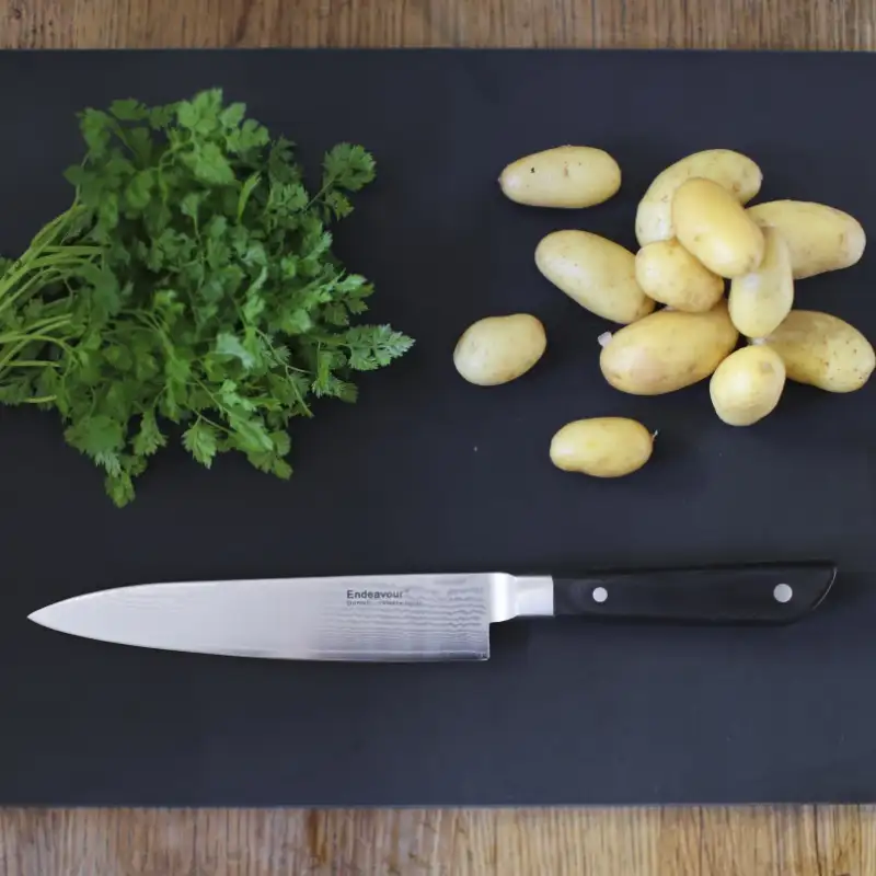 Endeavour kniv- og køkkenserie består af kokkeknive, skærebrætter, forklæder, pander samt en række andre kvalitetsprodukter til køkkenet. Diverse køkkengrej – herunder Endeavour-knivene – er skabt af de to danske mesterkokke Nikolaj Kirk og Mikkel Maarbjerg. Hemmeligheden bag er netop at bestræbe sig. At gå hele vejen og gøre sig umage med kvalitet, æstetik og funktionalitet. Det lønner sig, for der er tale om kokkeknive, der allerede nu har slået navnet fast med syvtømmersøm i både kokkekredse og blandt private.