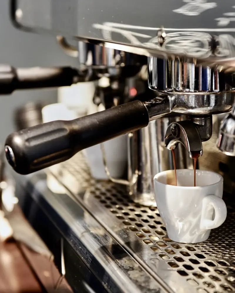 Det er ikke kun brillerne, der er nænsomt udvalgt med en kræsen hånd, kaffen signalerer ligeledes godt håndværk. Den kommer fra Kaffe-Mølle i Kolding, og blandingen er sammensat i samarbejde med vennen og ejer af Kaffe-Mølle, Michael Mølbæk. Som det gælder brillerne, er der også en kaffe, der passer til de personlige ønsker – fra en hurtig espresso til en langsom nydelse af en cappuccino. Dertil kommer et udvalg af chokolade og kager fra Vejle-konditoren Jeanett Ansberg fra La Nouvelle.