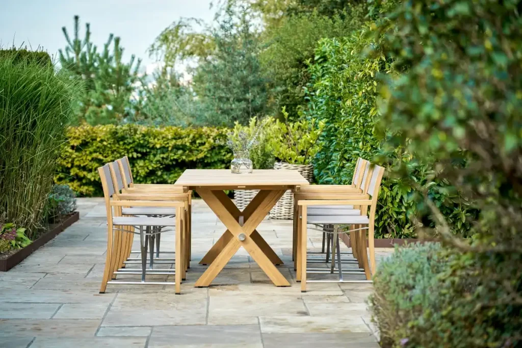 Mads Odgård har designet havesættet Tikøb, inspireret af skandinavisk enkelhed og asiatiske rejseminder. “Designet skal ikke skrige. Det skal holde – både i udtryk og funktion,” forklarer Odgård. Tikøb-sættet består af tynde teakprofiler, som trods letheden er ekstremt stærke, og sættet leveres usamlet for nem transport og opbevaring.