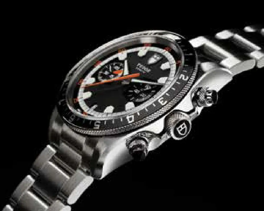 Startskuddet til en ny tid for TUDOR kom med lanceringen af Heritage Chrono i 2010. Uret er en relanceringen af TUDOR Oysterdate Chronograph fra 1970 og er i stil gennemført retro med et reformuleret formsprog og et moderne, lidt kantet design. I 2010 introducerede TUDOR uret i sort og grå med bl.a. sorte øjne til kronografen, og siden kom modellen i blå og orange med stållænke og referencer til Tudor Montecarlo-uret fra 1973 til verden. Urkassen er 42 mm poleret stål med satin-finish, og urværket er naturligvis selvoptrækkende mekanisk. Der medfølger desuden Nato-urrem til Heritage Chrono, alle tre modeller er vandtætte ned til 150 meter, og prisen er godt kr. 32.000.