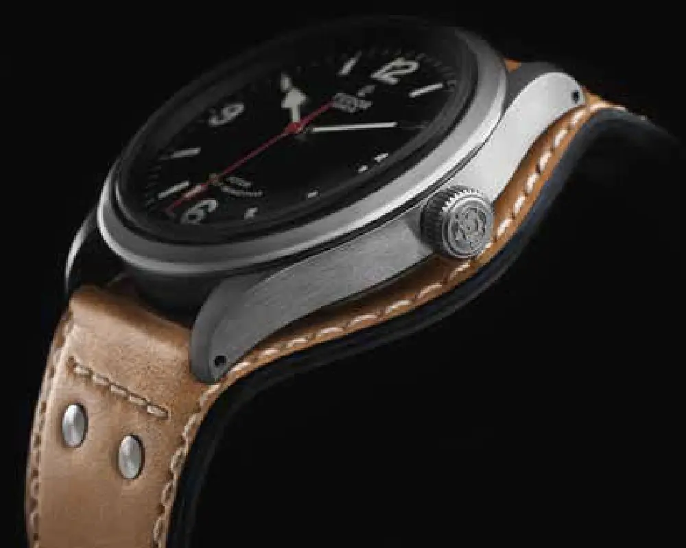 – Det er et meget enkelt ur uden ekstra features. Det viser tiden. Usædvanligt for denne urskive er, at den er malet på – og ikke trykt som normalt, hvilket giver uret noget æstetisk fylde og underbygger retro- looket. Normalt følger der også camouflage Nato-urrem med til TUDOR Ranger.