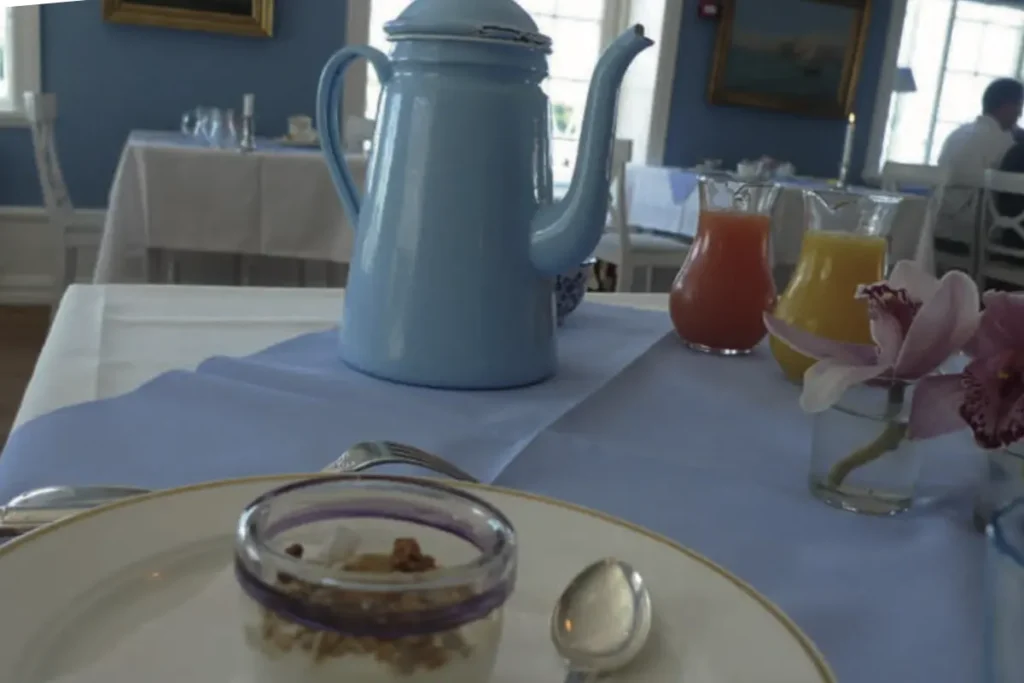 I samme takt som vi i sindigt tempo bevæger os gennem landskabet forsvinder den velkendte følelse af stress og jag. Da vi sidst på eftermiddagen triller ned af den stejle bakke mod vigen hvor hotellet ligger, er vi helt klar til et par dage med forkælelse af alle sanser – og til en kop friskbrygget kaffe fra Madam Blå kanden.