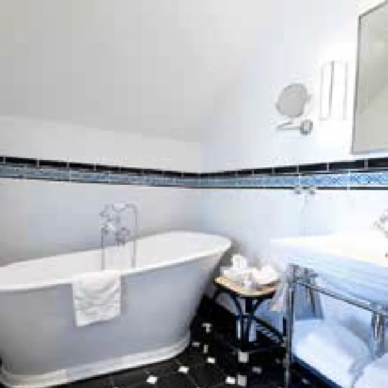 – Udgangspunktet er det klassiske badehotel med paneler og tapeter, men med et tvist. Det er romantisk, men ikke overgjort. For eksempel har gangene ikke klassisk stribet badehotelstapet, men prikket. Værelserne har en klar linje, men samtidig varierer de også alle i udtryk, indretning og farver. Det er gennemført stilmæssigt, men der er feks. også håndmalede marokkanske fliser og britiske armaturer på badeværelserne. Og så er der alt i moderne teknisk udstyr såsom bl.a. en stor fladskærm. Der skal være lidt ekstra til gæsterne, og der er ikke gået på kompromis med kvaliteten nogen steder.