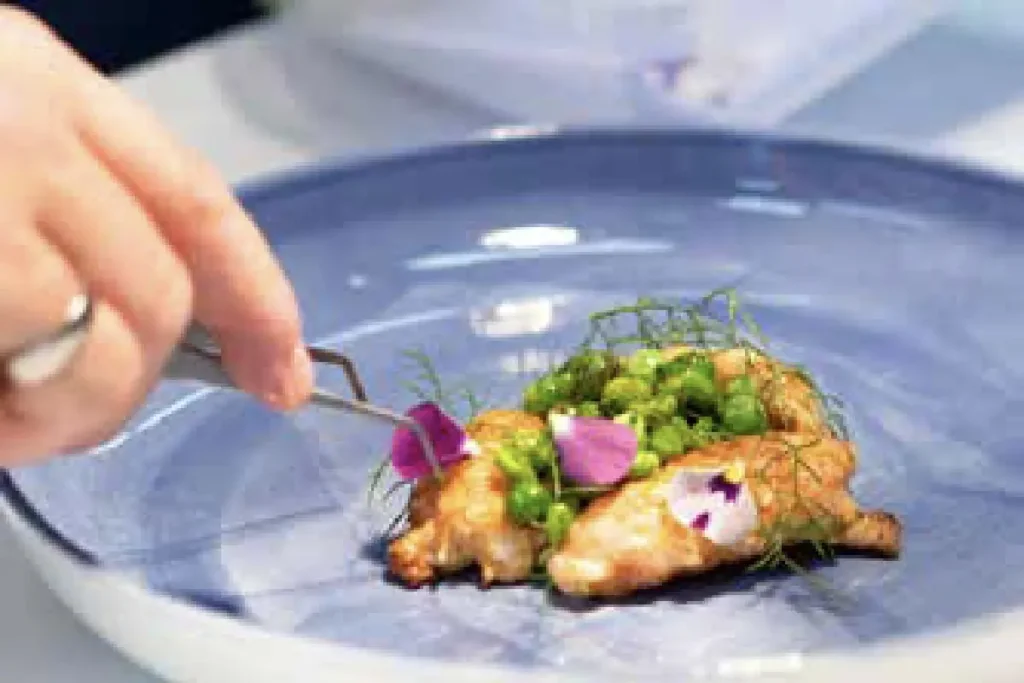 – Frokosttallerkenen er i den mere traditionelle ende, mens vi leger lidt mere med de store syv-retters aftenmenuer. Samtidig henter vi inspiration fra det franske køkken, som jeg er oplært i, i forhold til tilberedningsmetoderne. Og vi kigger også meget mod naturen og har bl.a. en lokal, der plukker svampene i baghaven og urterne på stranden. Vi vil i det hele taget gerne fortælle historien om maden, slutter Thomas Guldhammer.