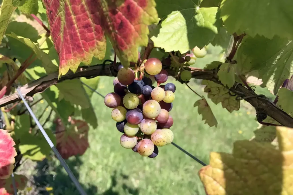 Vinen fra Grandhøjgård er sammensat af mange forskellige druesorter, da familien har et samarbejde med Landbohøjskolen, der bruger marken til at få viden om hvilke druer, der egner sig bedst til det danske klima.