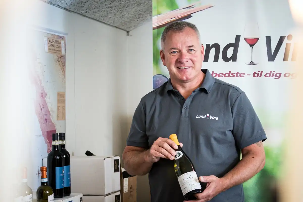 ”Gennem mit arbejde har jeg et stort netværk, så i begyndelsen solgte jeg mest til erhvervskunder, men Grenaa er en lille by, og da jeg er opvokset her, rygtedes det hurtigt, at jeg var blevet vinhandler. Folk blev nysgerrige, så i efteråret 208 åbnede jeg en fysisk butik,” siger vinhandleren.