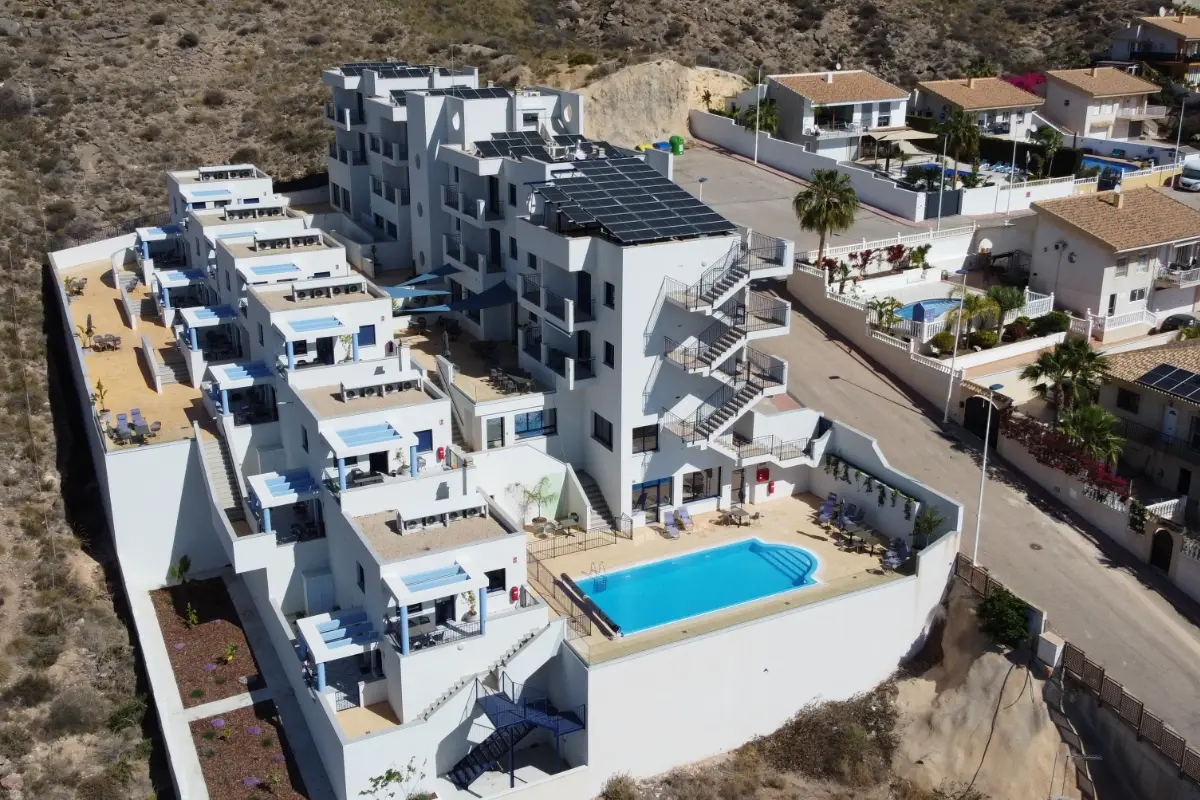 I 2023 åbnede en ny mulighed for at blive boligejer i Spanien – på deltid. Bygningen, som blev bygget som hotel, havde stået tom i flere år efter finanskrisen, da entreprenøren Stig Jørgensen fik øje på den. Han havde allerede erfaringer med et lignende projekt i Umbrien, Italien og nu blev han fristet af den fine store bygning i Bolnuevo. Bygningen ligger smukt helt oppe i kanten af bjergene, men alligevel kun en km fra kysten og med fin udsigt over havet.